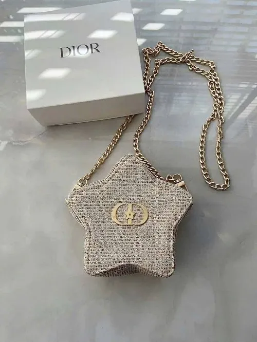 4️⃣ Túi Dior Star: Chất vải tweed kim tuyến siêu đẹp, về làm ví cầm tay hay móc thêm dây xích đeo đi tiệc thì sang hết nấc